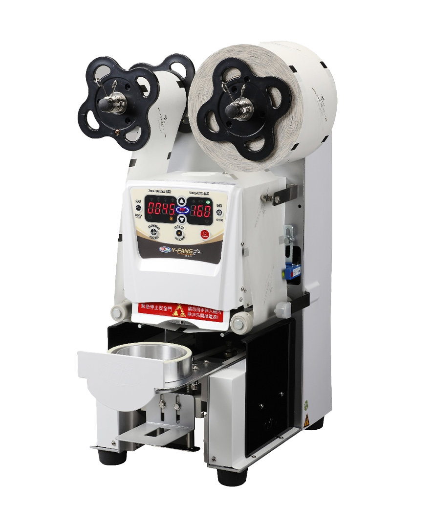 A high-speed automatic cup sealer that provides a hygienic, spill-proof finish for professional beverages.